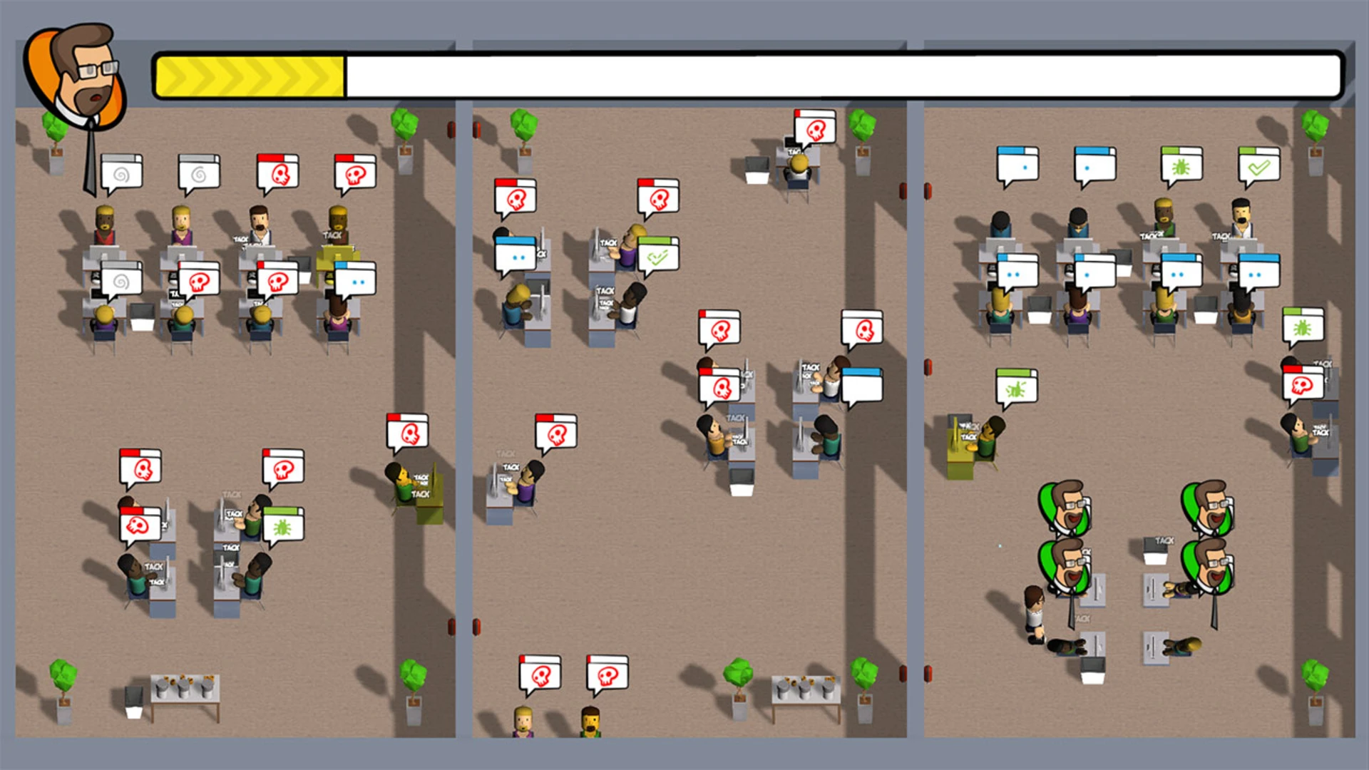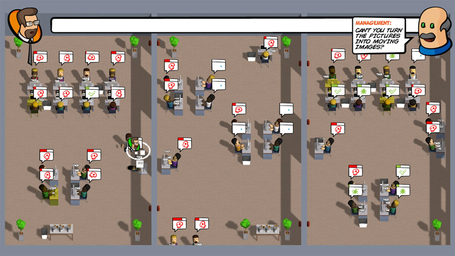 Tomorrow's the release of the company's new AAA title "Creed of Duty". But shortly before the release the middle management decides to add new features. The other developers are already including them even though there's a feature freeze!