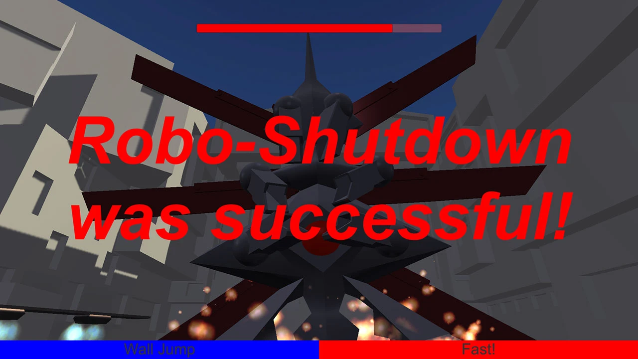 A giant robot has destroyed the city's centre. The protagonist has to save the day and power off the evil flying robot by pressing its power switch while evading the mechanic deathmachine's deadly attacks on the way by switching his own powers.