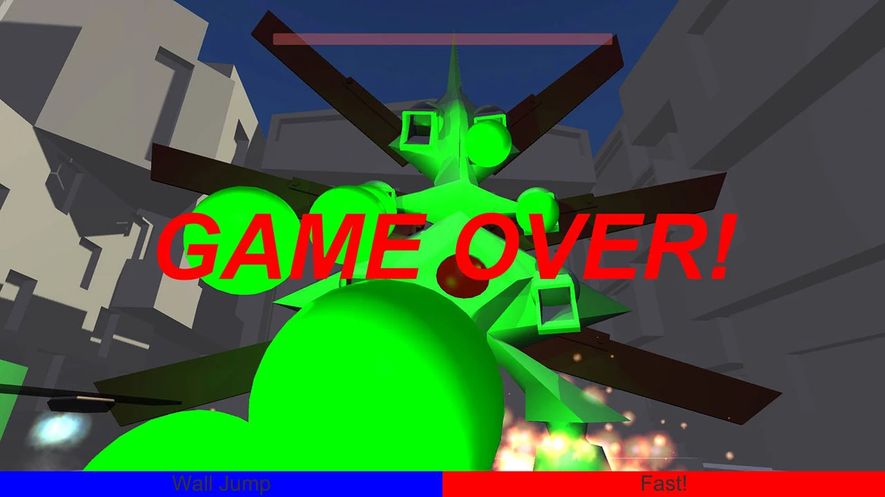 On his way through the devastated city streets, the player must dodge the robot's deadly color ball projectiles. Those color balls come in three colors: