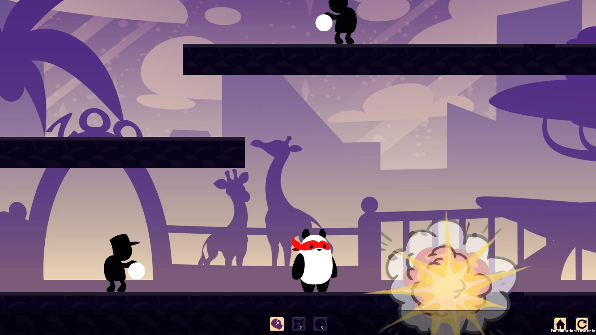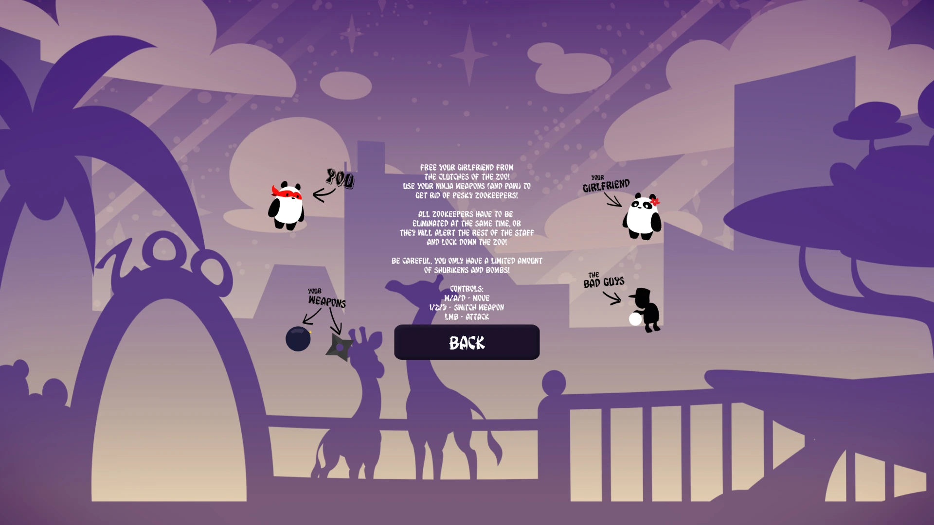Free your girlfriend from the clutches of the zoo. Use your ninja weapons (and paws) to get rid of pesky zookeepers. All zookeepers have to be eliminated at the same time or they will alert the rest of the staff and lock down the zoo. Be careful! You only have a limited amount of shurikens and bombs.