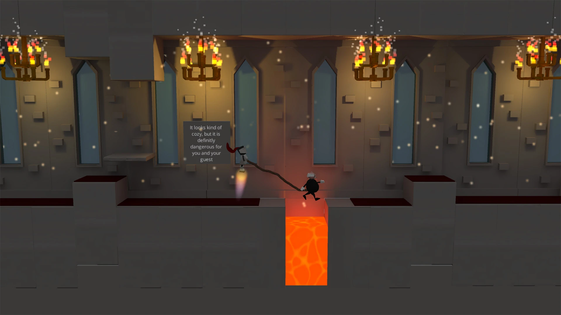 Hero-knight Kevin wants to have an audience with his king. At the castle he is greeted by the king’s butler Albert. Kevin states his request to the butler who agrees to take him to the great king. But first he insists on securing the knight with a rope to himself because of treacherous hallways. And for good measure he gives the hero a pair of the finest quality rocket boots (and backpack).