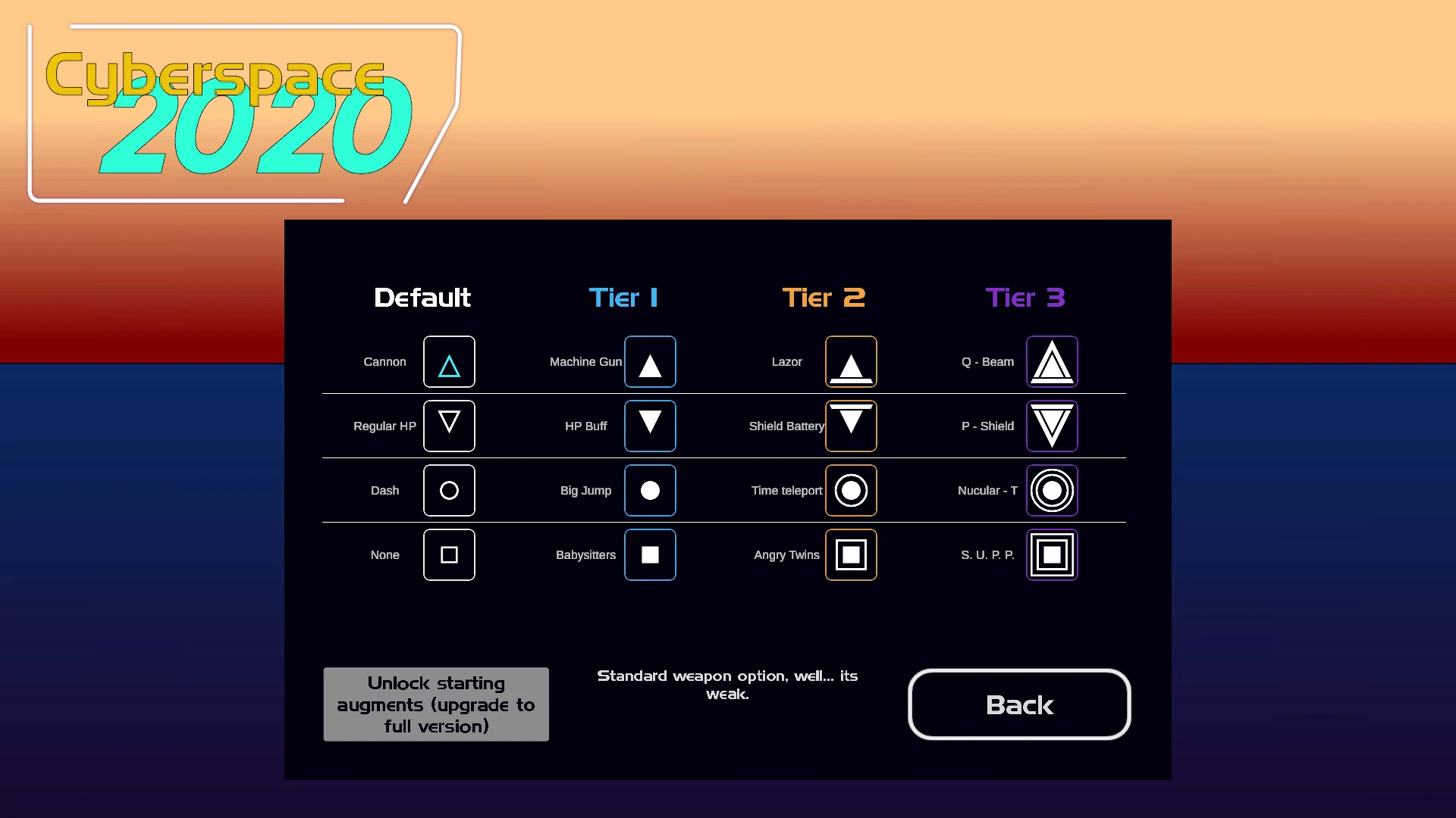 Cyberspace is a fast-paced bullet-hell shoot-'em-up created with Unity. You have to move, dodge, teleport, and shoot your way to the final boss. But to earn upgrades, you must first defeat the whole wave and then choose between a random selection.