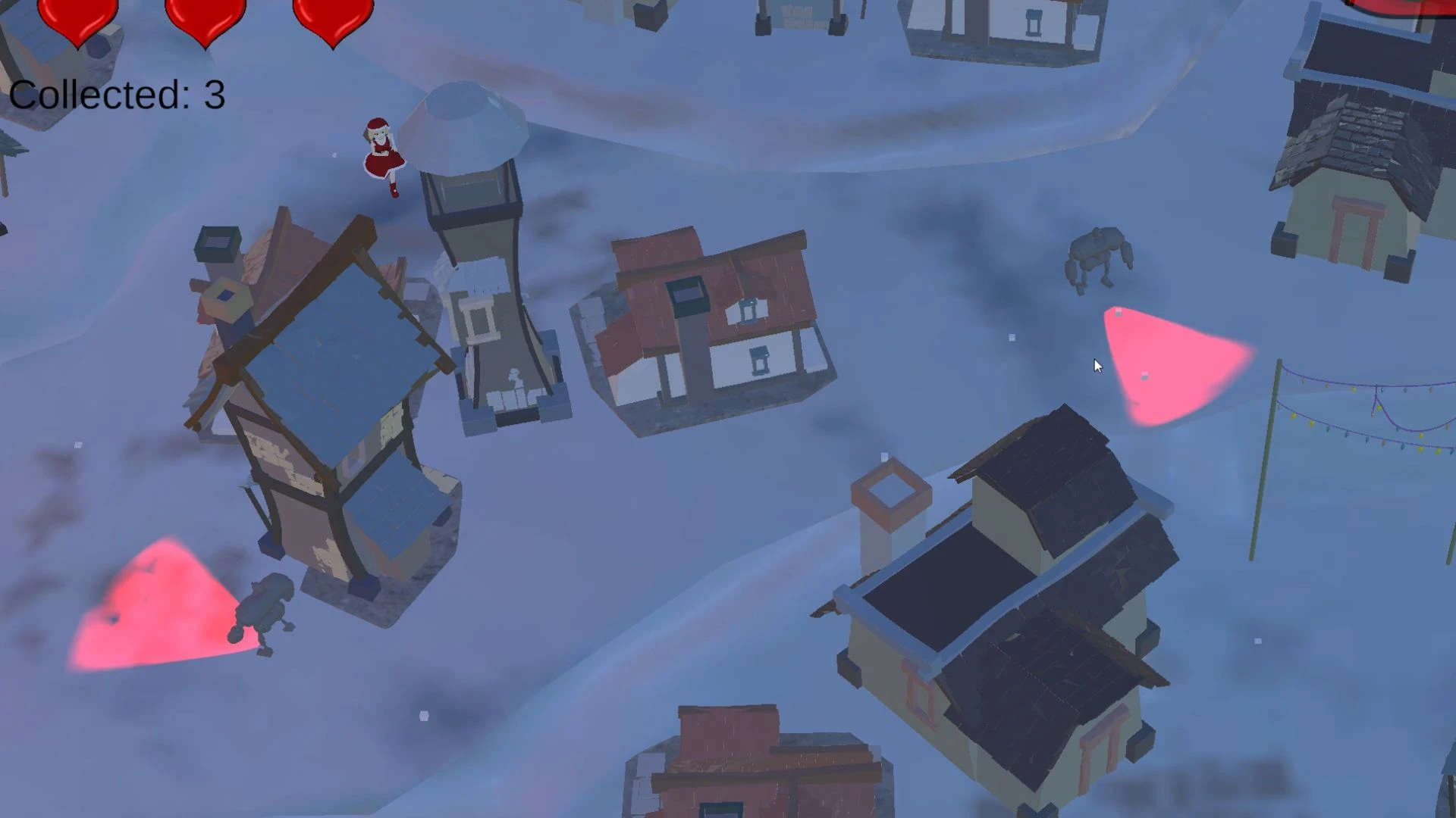 The main character in this game is a loyal servant of Santa Claus. Just before Christmas, evil robots have stolen the presents. Santa has commanded the retrieval of these presents to save Christmas. The story unfolds with the main character pursuing the robots to a small village where the presents are hidden. The mission is to return all the presents before Christmas, and there is only a 10-minute window to accomplish this task. A significant challenge is that the character's only ability is to transform into a present to evade the robots. However, players must be cautious as this ability has a cooldown period. It is imperative to avoid being caught by the robots. The goal is to save as many presents as possible.