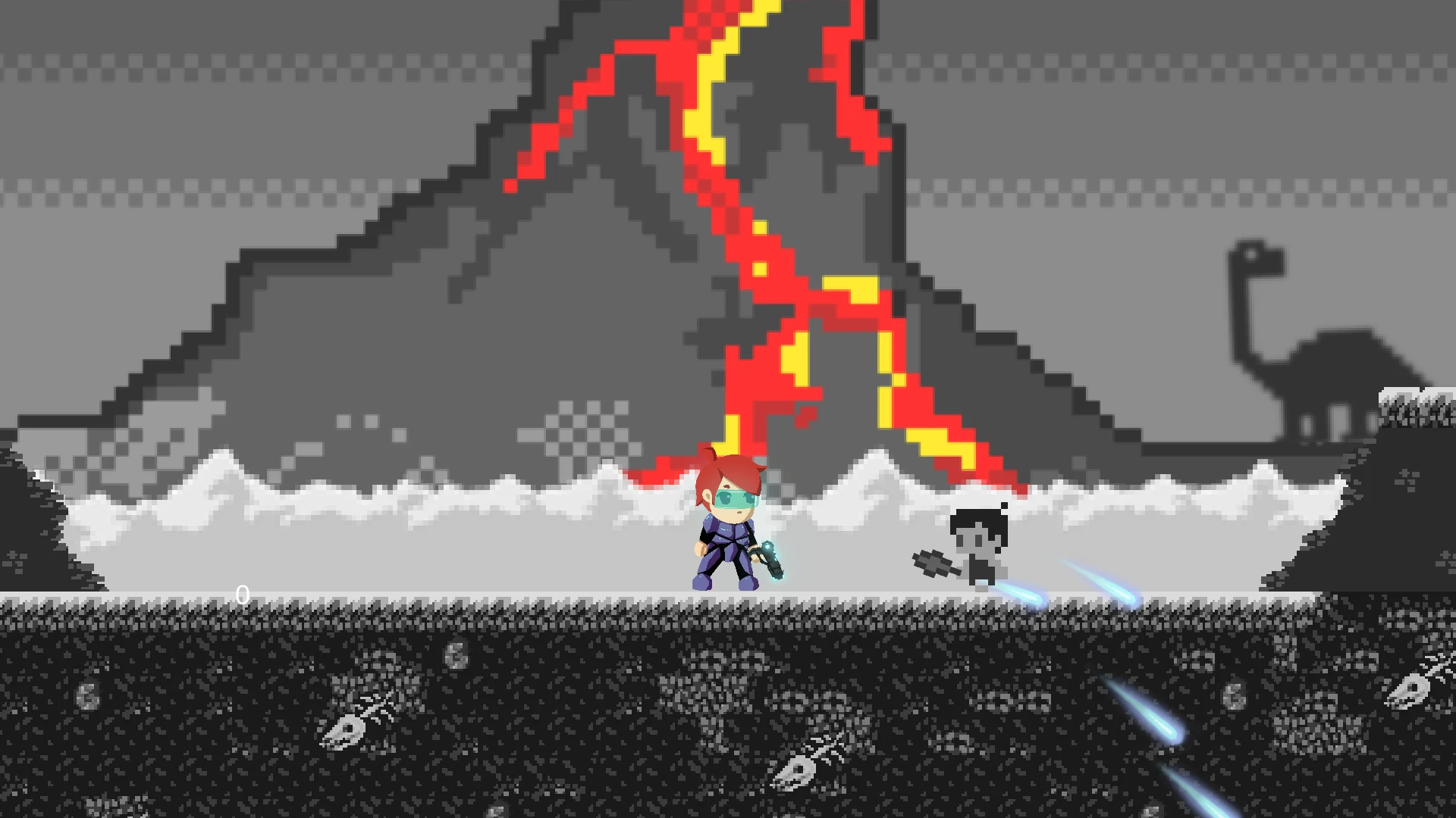 Oh no! You've been sucked through a time portal and find yourself in the prehistoric past! To make things worse, a giant volcano is erupting, and the explosion is hurling dinosaurs through the air! Before finding a way back to the future, you need to survive. Dodge the dinosaurs (and the panicking caveman) and collect as many shells as possible!