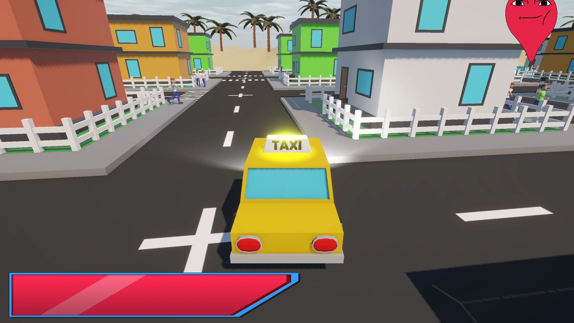 The player's goal is to drive passengers with a taxi to a desired building.