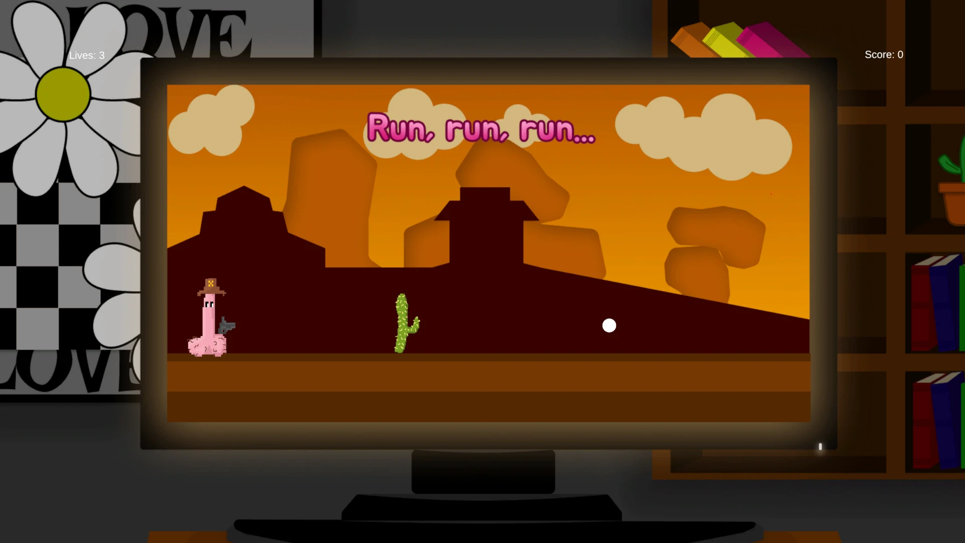 - Left mouse button for clicking buttons - Space to skip to the next message/choices ### CookieClicker - Accept cookies by clicking 50 times on the cookie ### Pong - W or Up Arrow to move up - S or Down Arrow to move down - Play until one has 5 points ### Whack-a-Mole - Click 25 Moles as long as they are visible ### Endless Runner - Space to jump - Shift or Left Mouse Button to shoot enemies - Kill 10 enemies or get hit 3 times by obstacles