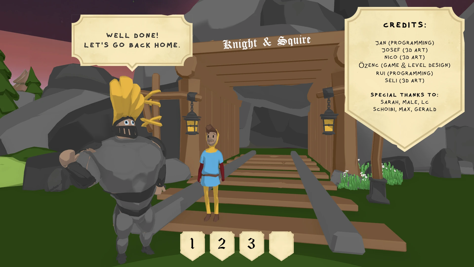 "Knight and Squire" is a linear story puzzle game about a Knight and Squire on their way home from their last adventure. That should be an easy endeavour, right? Unfortunately, as strong and kind as Knight is, he isn't the brightest. Seemingly easy tasks, like walking around a gate, become increasingly difficult to complete. Help Squire support Knight and ensure Knight travels home safely for a well-deserved, relaxing vacation.